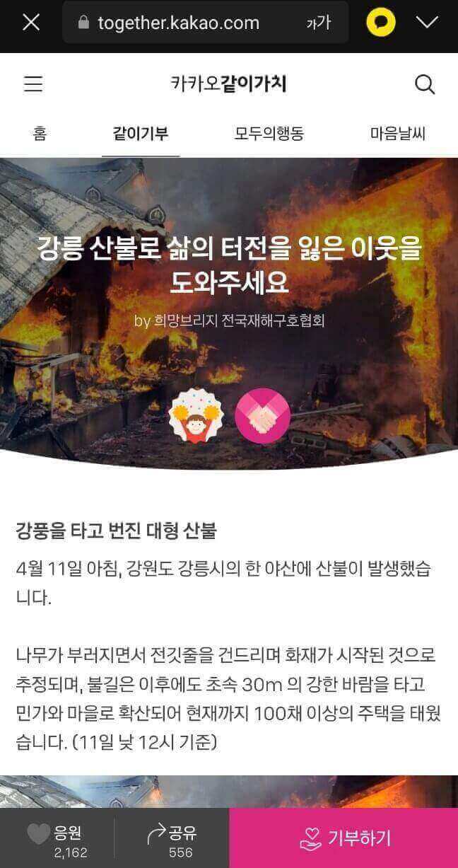 강릉 산불로 삶의 터전을 잃은 이웃을 도와주세요