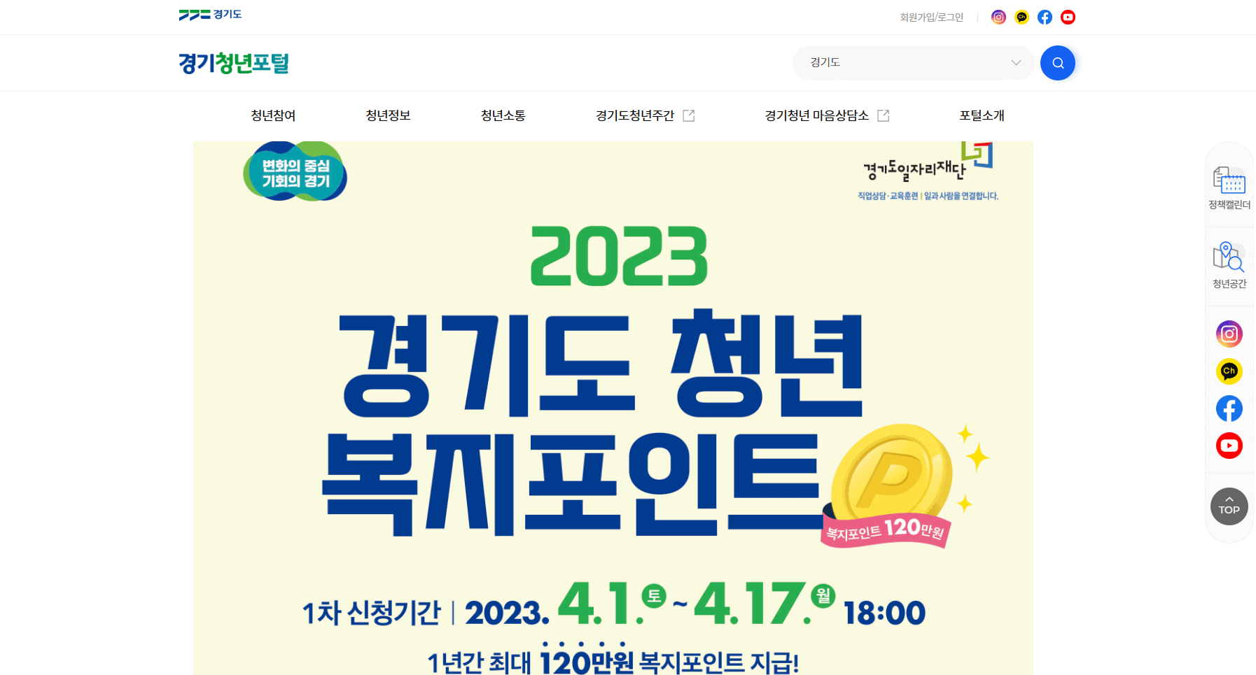 경기도에서 청년들을 대상으로 복지 포인트를 지급을 한다고 합니다. 최대 120만 원까지 받을 수 있는 복지포인트를 어떻게 해야 받을 수 있는지 한번 알아볼게요