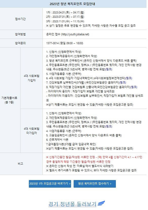 경기도 청년복지포인트 1차 신청이 곧 마감됩니다. 서두르세요