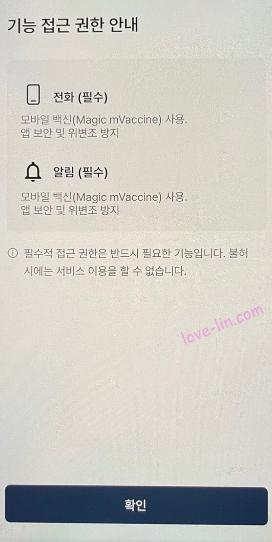 다음으로 기능접근 권한 및 서비스 이용약관을 확인하고 동의하면 됩니다.