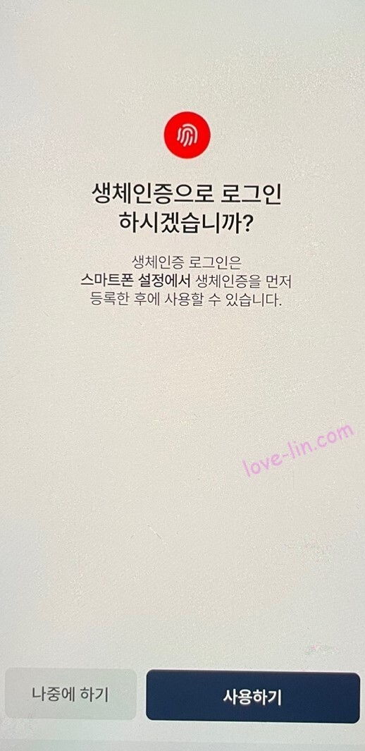 생체 인증 설정은 선택사항이기 때문에 불필요하신 분들은 하지 않으셔도 상관은 없습니다.