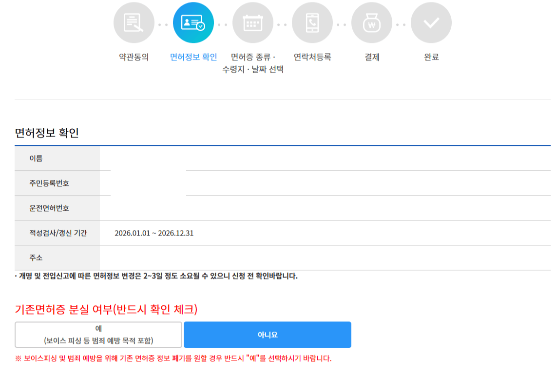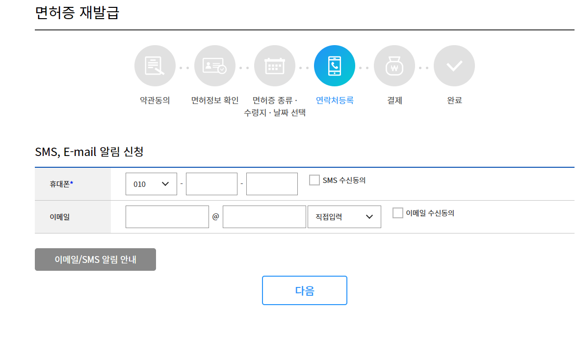 위 온라인 신청하기 바로가기를 통해서 접속을 하면 운전면허증 재발급 화면이 나오게 됩니다. 해당 페이지에서 면허정보 및 수령방법 등 선택사항을 기입을 하게 되면 인터넷으로 발급 신청을 완료하실 수 있습니다.