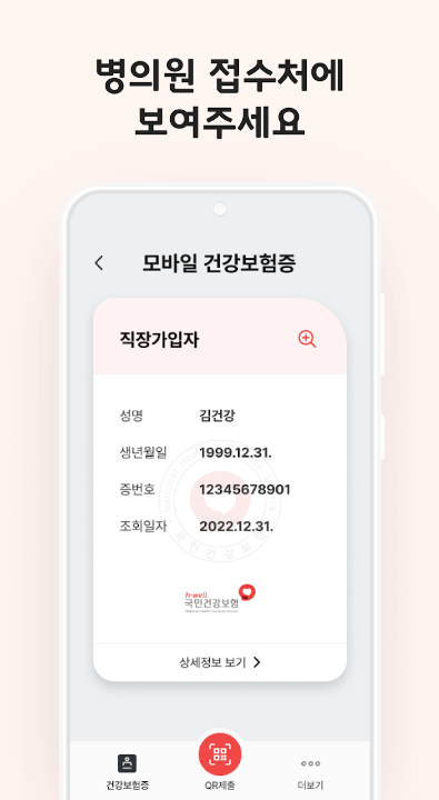 병/의원에서 신분증 또는 모바일 건강보험증을 제시하지 않았을 경우 최대 5배의 진료비가 부과될 수 있으니 꼭 모바일 건강보험증 발급하시는 것을 적극 권장합니다.