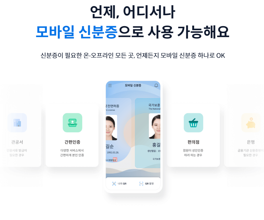 하지만 요즘 시대에 신분증뿐만 아니라 지갑 자체를 휴대하지 않는 사람들이 늘어나고 있는 만큼 모바일 신분증은 필수로 가지고 계셔야 합니다.