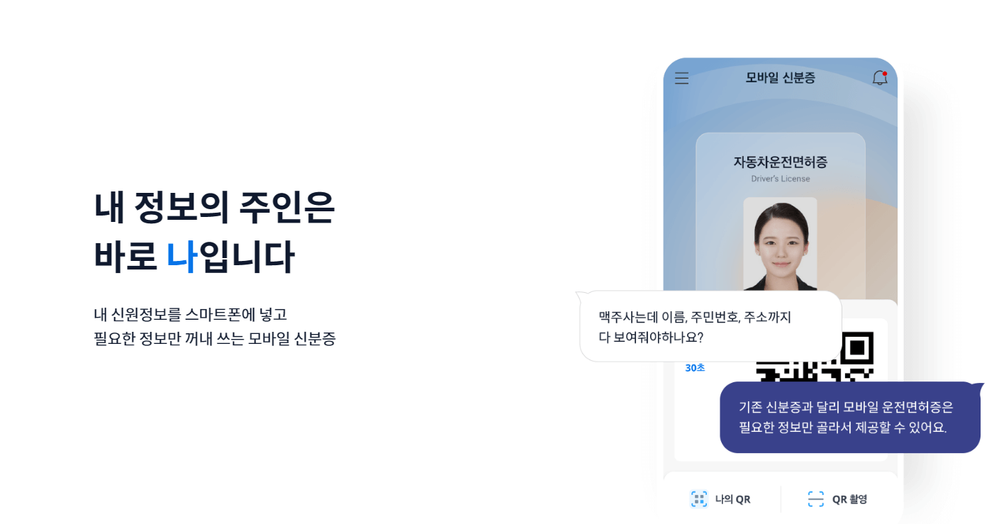 -모바일 신분증 앱을 실행시킨 후 나의 QR을 클릭하여 QR코드를 확인 또는 촬영으로 확인 끝!!!