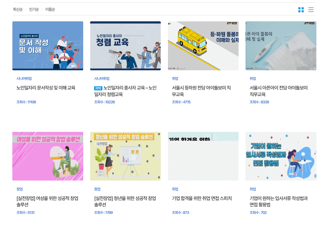 서울시 평생학습포털은 전 국민 누구나 이용이 가능하기 때문에 본인이 40대 50대가 아니더라도 많은 정보를 무료로 얻을 수 있는 기회입니다. 아직 목표가 없더라도 미래를 위해 본인이 관심이 있던 분야이거나 도움이 될만한 정보들을 확인하셔서 각종 취업. 창업에 도전하는데 도움이 되셨으면 좋겠습니다^^